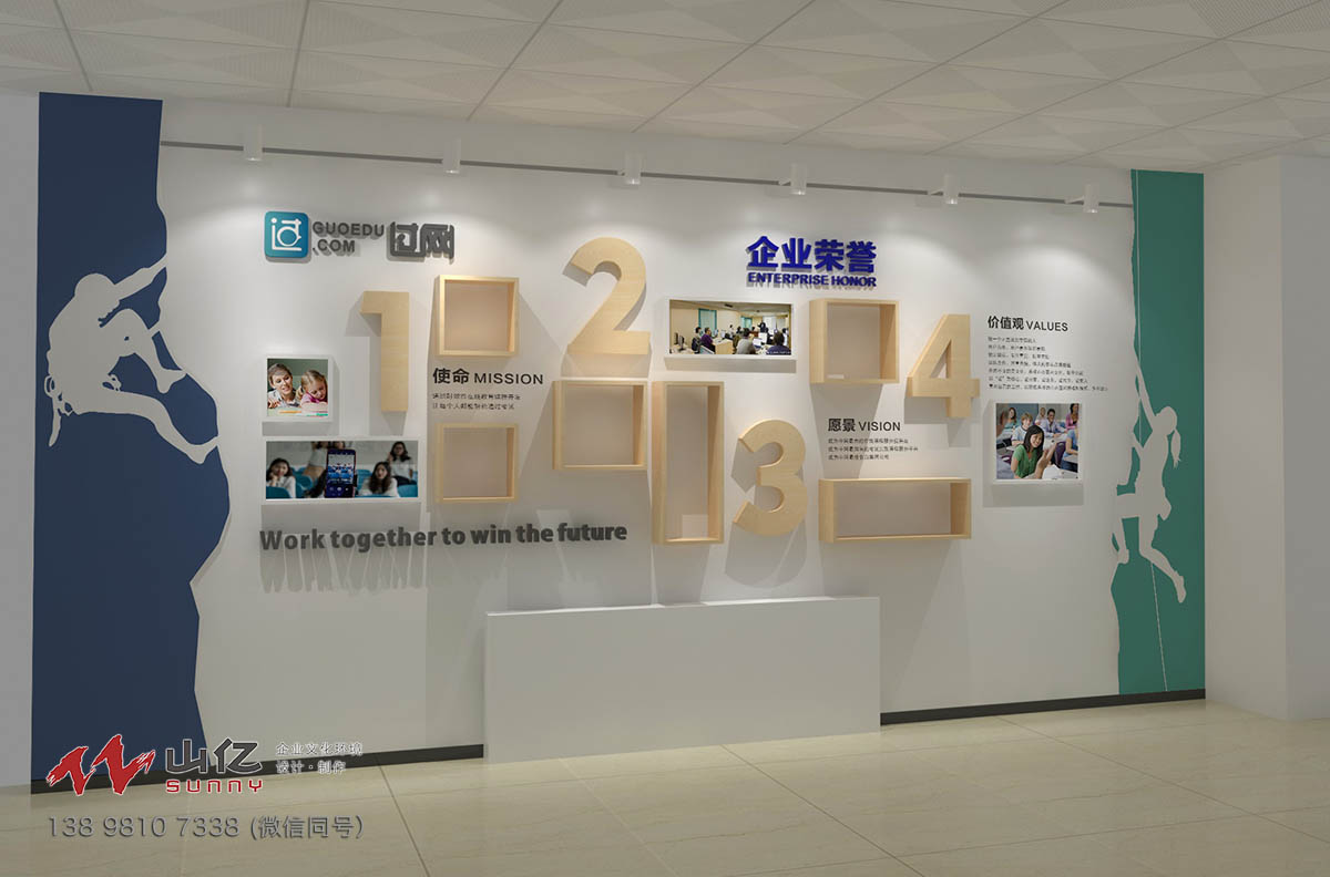 过网是沈阳线上教育培训机构,文化墙为提升机构办学形象,增加教育氛围体现机构经验与实力,文化墙突出团队打造与机构荣誉等。公司文化墙专业设计