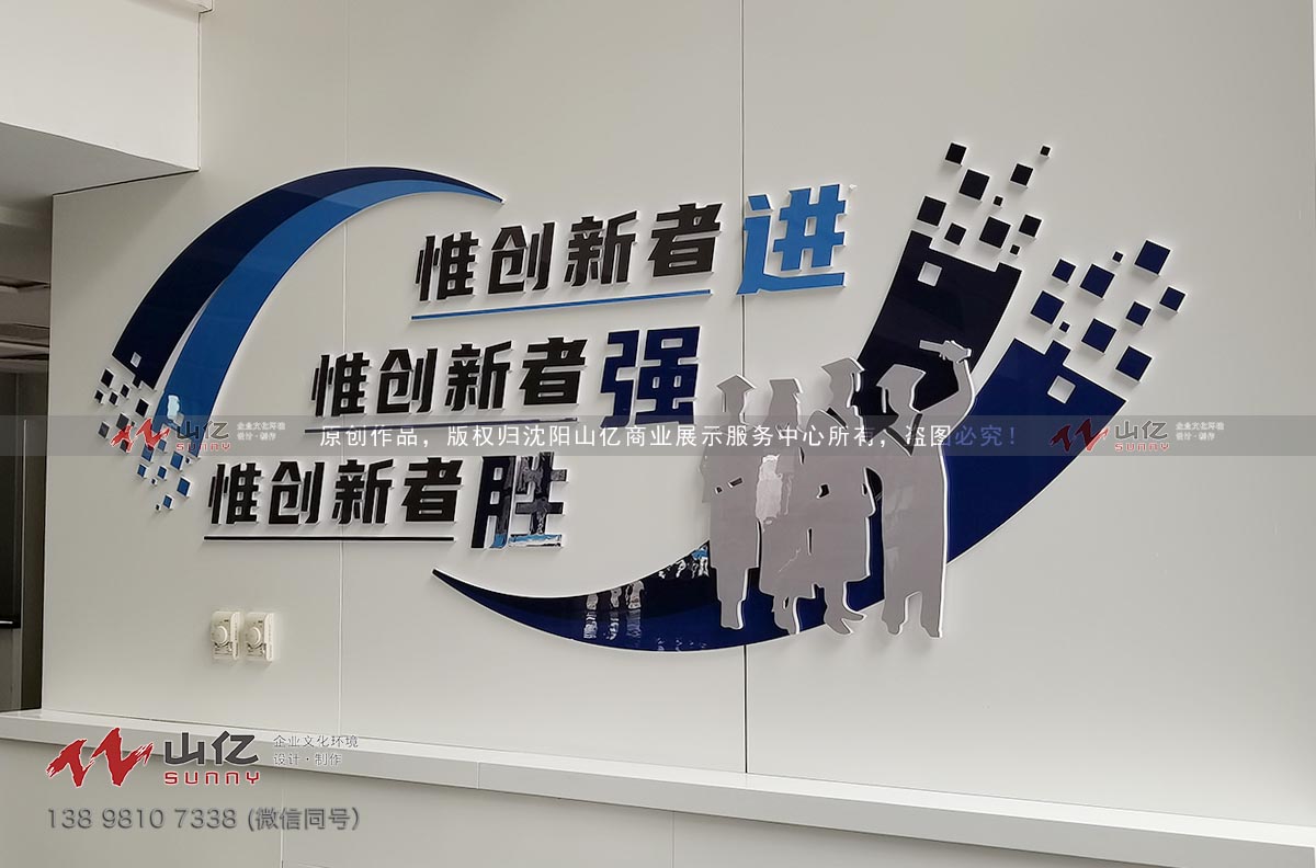软件学院,校园文化墙设计制作,以习总书记对科学创新领域的指导思想“惟创新者进、惟创新者强、惟创新者胜”作为软件学院的办学宗旨。文化墙设计风格体现科技感并以人物形象衬托出学院教育的特色。