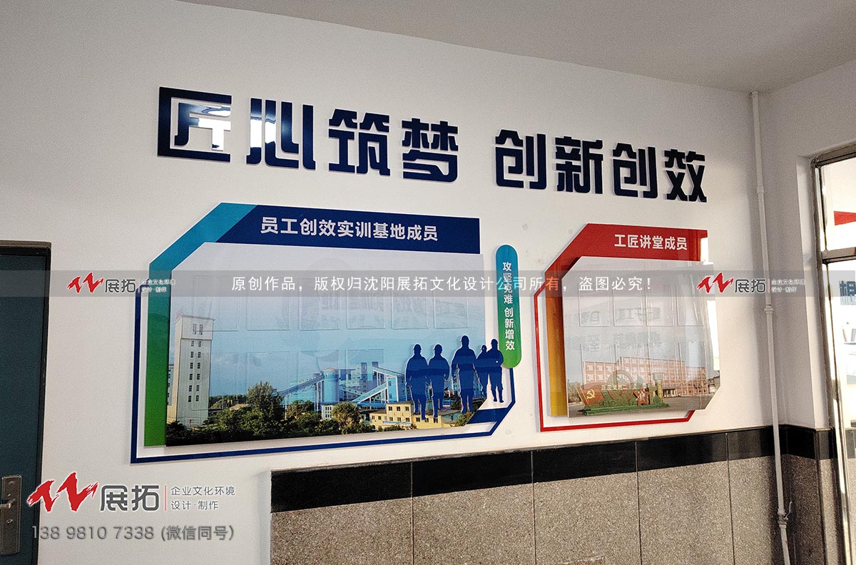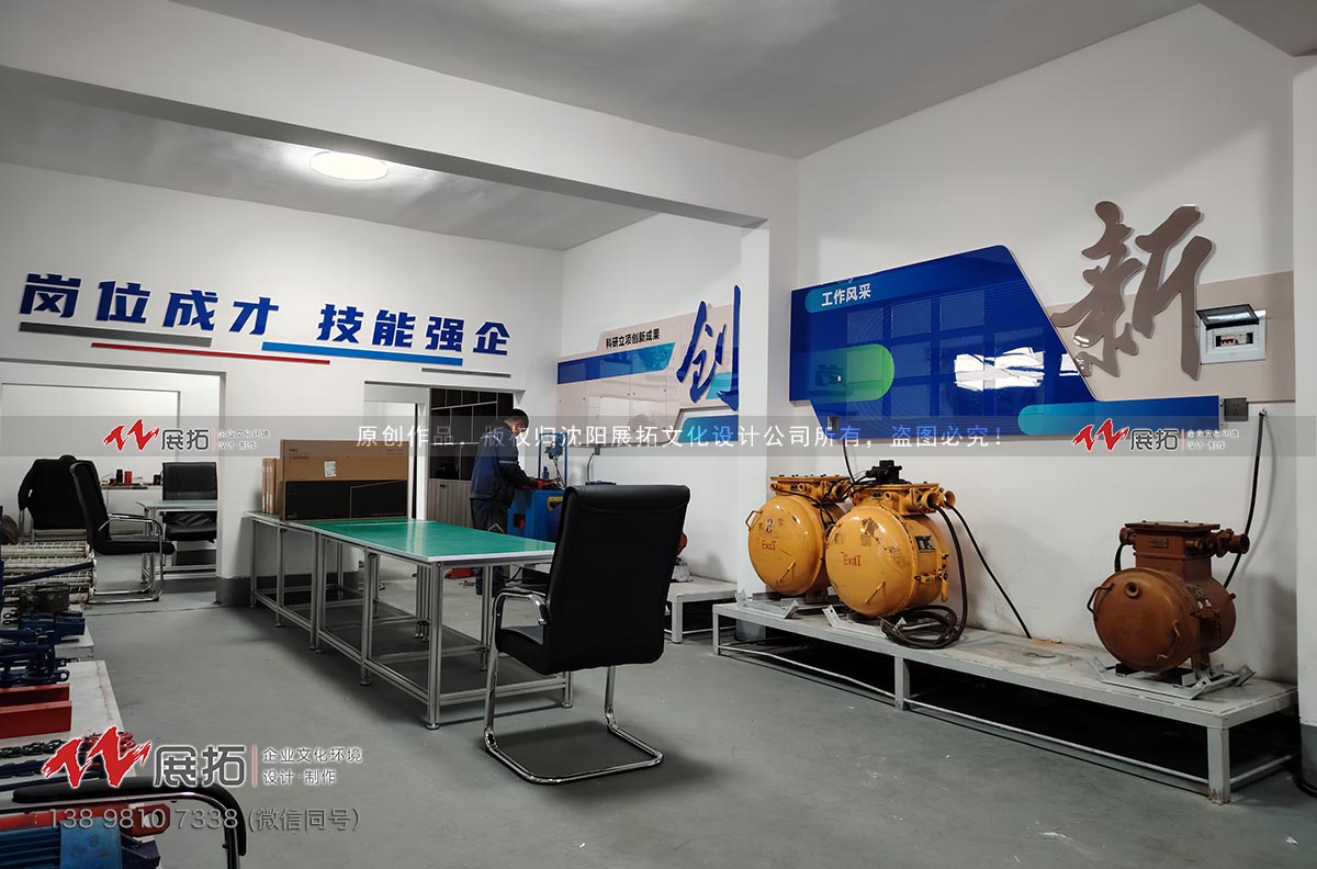 林盛煤矿员工创新创效基地文化环境设计与施工,项目涵盖室内与室外文化设计,展示基地建设以来的创新成果与实践创效,基地集成果展示、创新研发、设备升级改造、设备维修、经验交流的功能于一身。